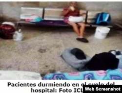 El escrito, firmado por el periodista Leodán Guevara, aparece acompañado de una foto que muestra a pacientes durmiendo en el piso del hospital León Cuervo Rubio.
